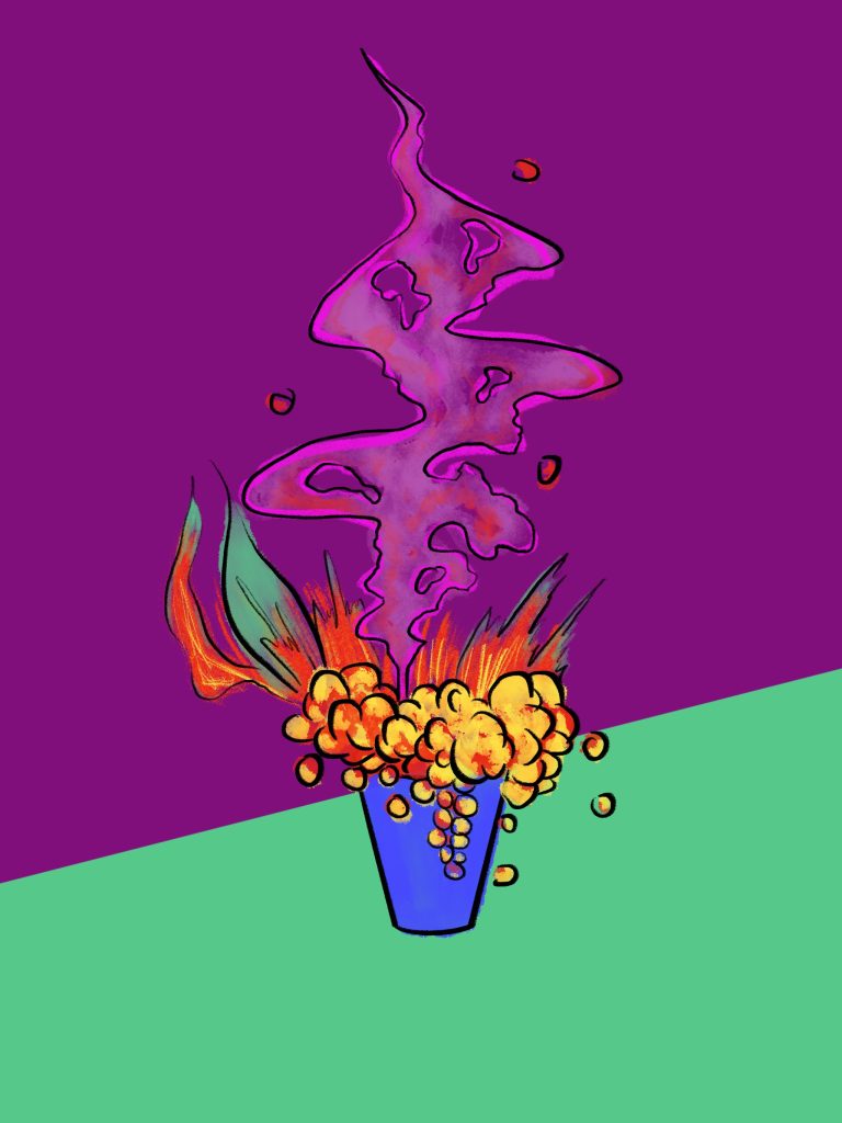 Experimenting with layering the pattern over different drawingsOil pastel doodle inspired by a drawing from a Korean television seriesAcrylic painting version